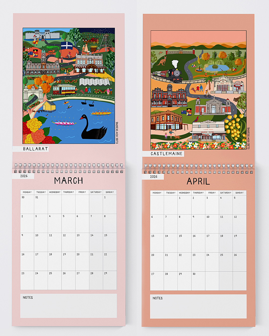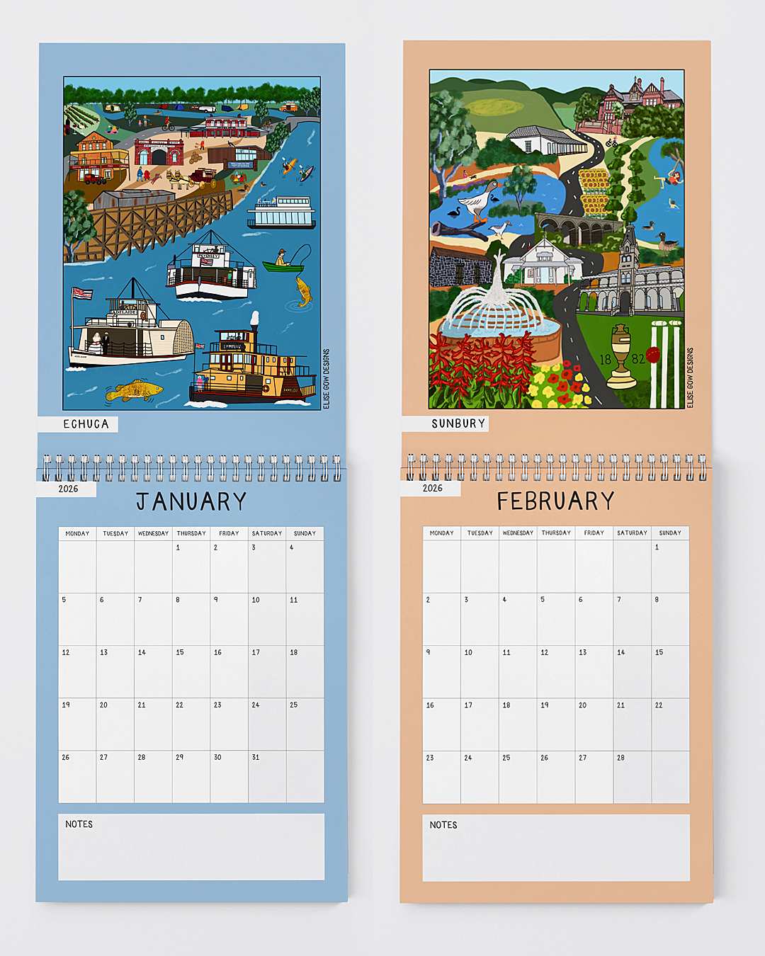 Designed in Gisborne and Printed in Melbourne - the calendars are A4 size.